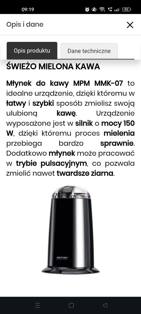 Grajewo ogłoszenia: Sprzedam w stanie idealnym elektryczny młynek do kawy MPM.